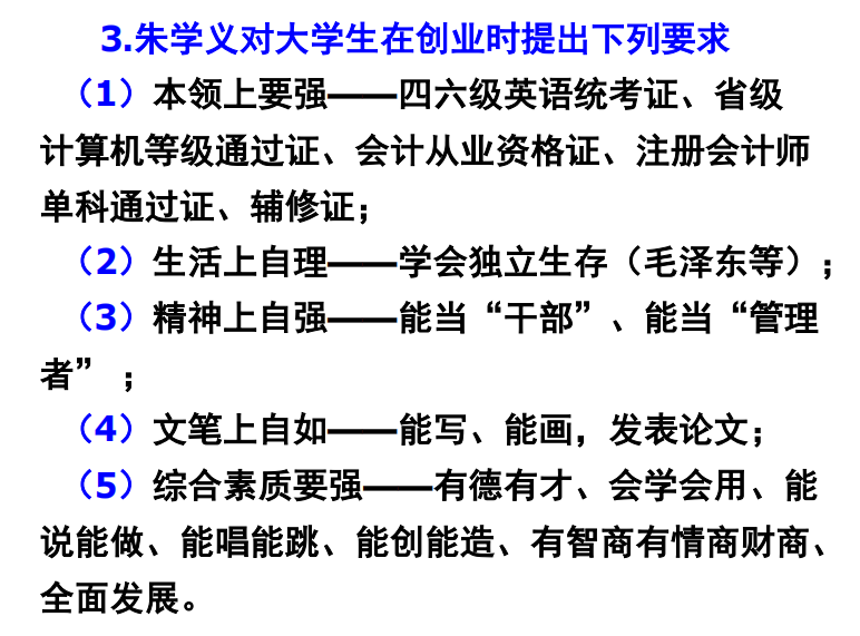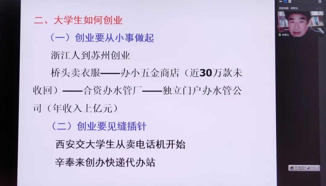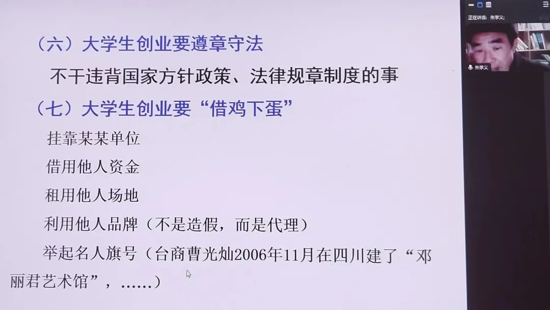 朱教授紧接着向我们提出第一个议题:大学生创业首先要立业。