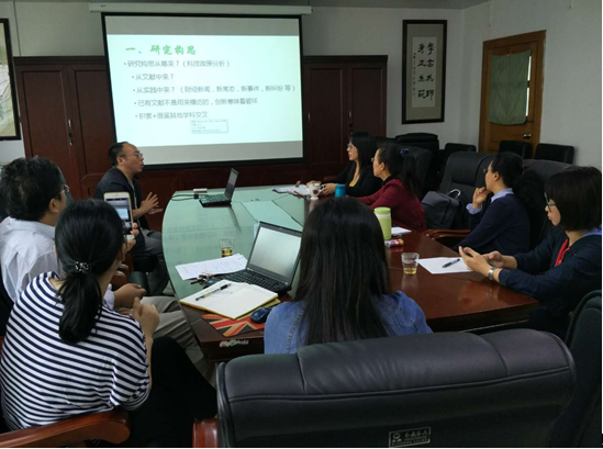 接下来是由章刚勇老师从研究构思、选题价值与意义、基本观点与创新之处、文献述评与学术语言等几个方面,结合自己的申报经验生动地讲述了项目申报需要考虑的事项和解决的问题。章刚勇老师提出了“创新意味着破坏,但破坏必须有依有据”的学术观点。文芳老师、蔡竞云老师和廖菁华老师在听完章刚勇老师的讲述之后,也积极地表达了一些自己的看法。