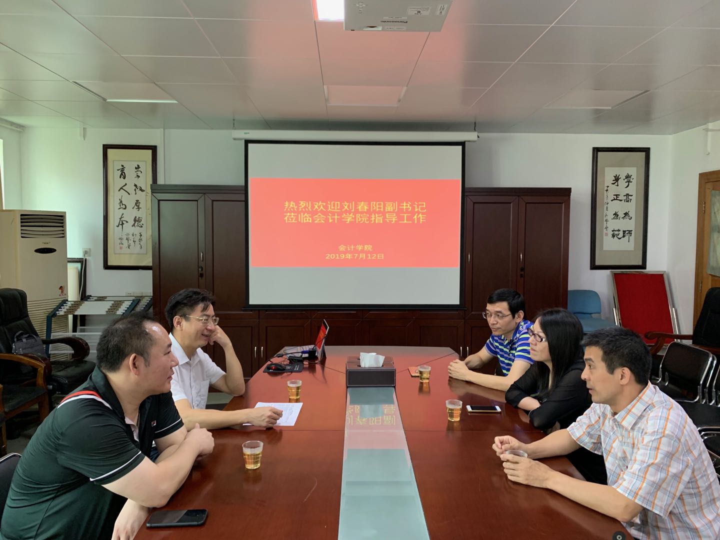 2019年7月12日上午,学校刘春阳副书记莅临bat365官网指导工作,随行的还有学校资产后勤管理处陈亮处长。学院赖志成书记、文芳院长和马鹏副院长参加了座谈。