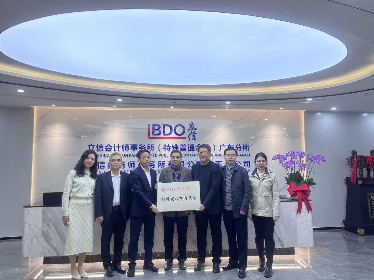 立信会计师事务所于1927年在上海创建,是中国最早建立和最有影响的会计师事务所之一。立信广东分所于2011年3月成立,由原立信羊城会计师事务所以及原立信大华会计师事务所广州分所部分人员组成。立信广东分所将依托立信会计师事务所总所的优势,借助全球第五大国际会计公司——BDO国际网络,秉承优良传统,立足广东、面向华南,为国内外委托人提供高品质、高附加值的专业服务。双方就学生实习和就业合作机制达成共识。