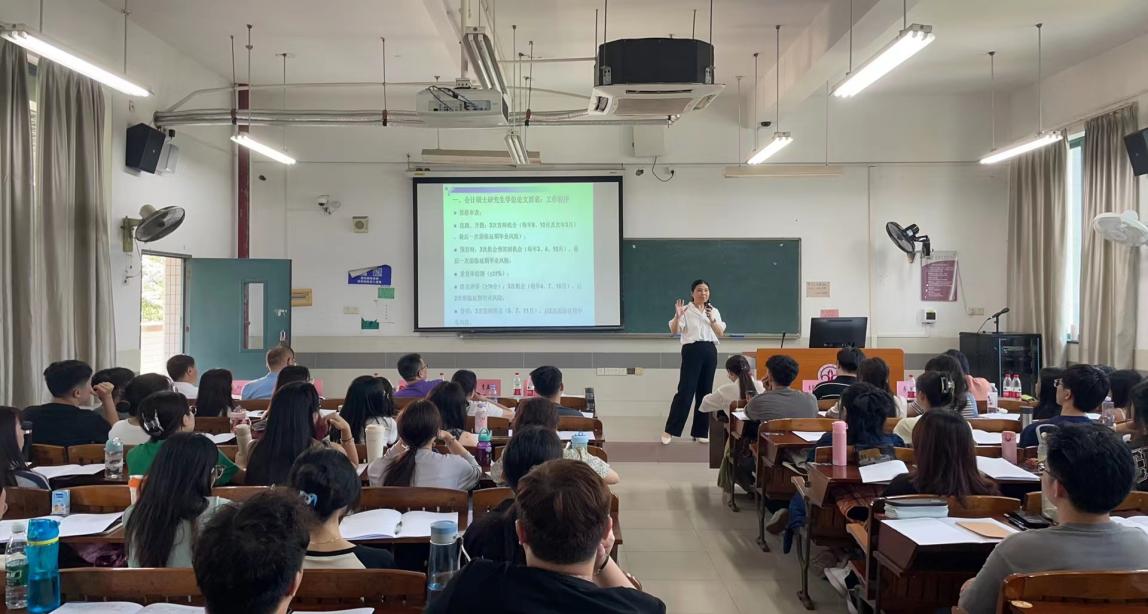 随后,汤四新教授、姜艳凤博士、朱郭一鸣博士、廖菁华博士、吴冬梅博士等导师及专任教师代表分别对自己的研究方向进行了介绍,并结合他们的教学和研究经验,为同学们提供了宝贵的学习建议。最后,在师生自由交流环节,同学们积极踊跃提问,导师们耐心倾听并对同学们提出的问题一一给予详细的解答。在现场轻松而融洽的氛围中,2024届会计硕士研究生专业教育暨师生见面会圆满落幕。