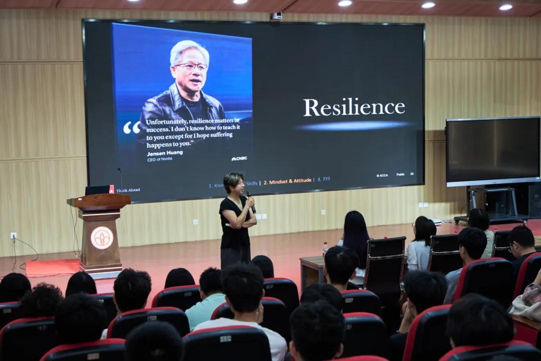 接着,梁淑屏老师列举出了黄仁勋(Jackon Huang)先生的例子,她对黄先生“纵使当前正处于一个不太好的现状之下,韧性是我们最需要的东西,拥有韧性不断努力就一定能在将来获得成功。”之言表示赞同