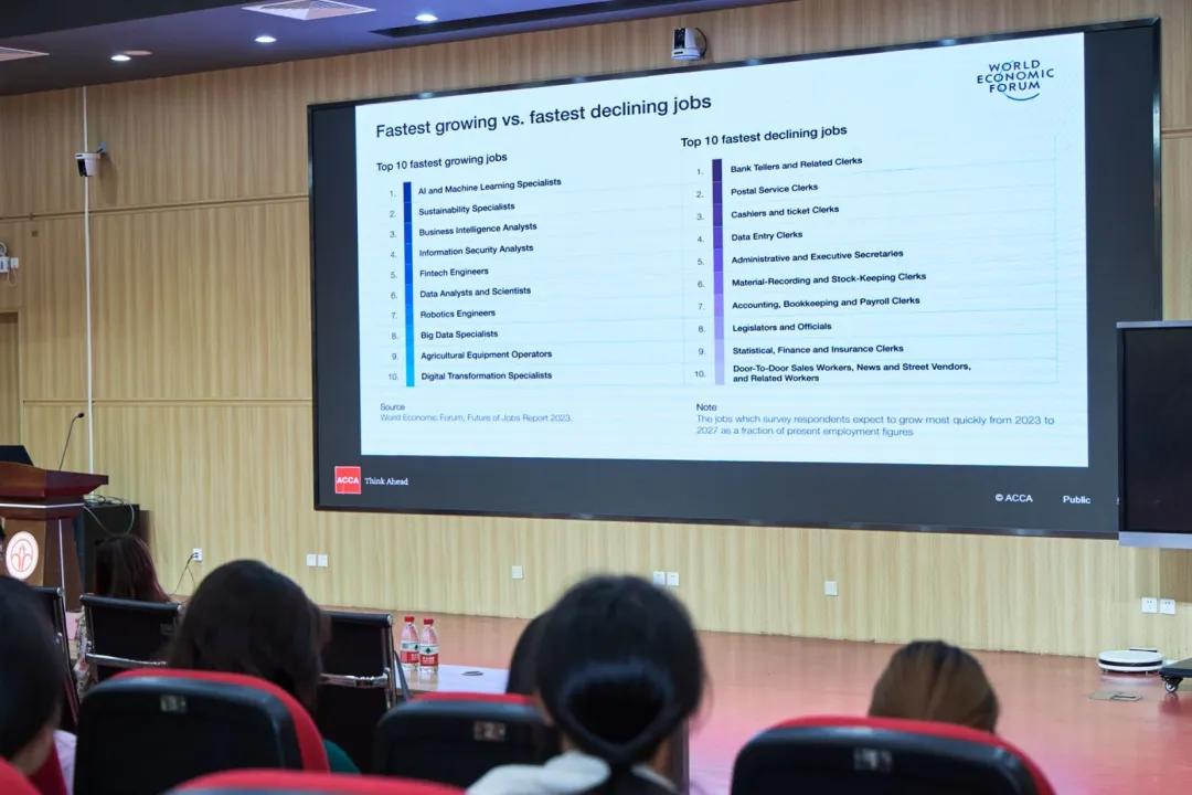 梁淑屏老师由当下的就业状况分析驱使大家换工作的三大关键驱动因素:绿色过渡、技术与经济展望。