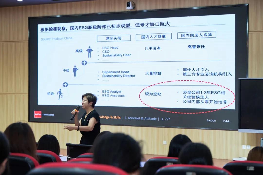 梁淑屏老师阐述了ESG的概念,并通过《企业可持续披露准则-基本准则(征求意见稿)》展示了ESG正逐渐普及的情况。近年来,ESG人才需求呈指数级增长,主要集中于美国和西欧等发达地区。尽管各领域ESG从业人士仍存空缺,但未来ESG相关工作或为大家提供更多就业机会。