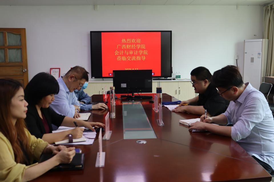 秦格院长对广西财经学院会计与审计学院副院长杨修一行的到访表示热烈欢迎,并详细介绍了学院在数智化会计人才培养、会计和审计专硕的人才培养、会计MPAcc案例大赛等方面的创新举措。他提到,学院近年来通过整合校企资源、优化课程体系,在会计专硕(MPAcc)案例开发、高层次科研项目申报等领域取得一定成效,并期待与兄弟院校共享经验、深化合作。