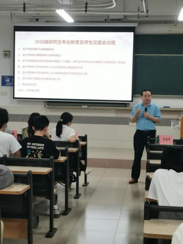 昂首阔步新起点,金秋筑梦正当时。在这个充满收获和希望的季节,bat365在线中国官网登录入口迎来2025级研究生入校。为帮助2025级研究生顺利完成角色转变、尽快适应研究生学习生活,bat365在线中国官网登录入口于2025年9月16日下午在北教B404举行2025级硕士研究生专业教育大会暨师生见面会。会议由bat365在线中国官网登录入口副院长舒利敏副教授主持,学院领导、研究生导师代表、任课教师代表及2025级全体会计硕士和审计硕士研究生参会。
