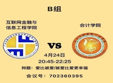 复赛:八进四,bat365在线中国官网登录入口迎战互联网金融与信息工程学院,双方就“爱与被爱何者更幸福”这一辩题进行讨论,bat365在线中国官网登录入口以6:3取胜,成功晋级四强。