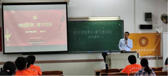 经过短暂的休息,赖志成书记于10:15为积极分子进行党校培训理论课堂(二)授课,开展课题为“党章的学习”。赖志成书记首先强调党章是党的根本大法,对加强党的建设具有重要指导作用。其次他向积极分子依次介绍了党章的发展历程、总纲、条文、党员的权利和义务、入党流程等党和党员的基础知识。同时详细地介绍了党的组织制度和组织结构。积极分子在书记的介绍下明晰了党章的基本内容,明确了党员应履行的义务。