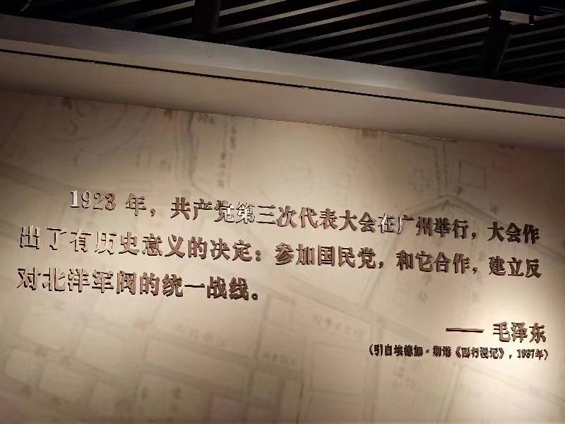 参观过程中,同学们跟随讲解员的步伐细心观察、深入思考,观看珍贵的历史文物,通过一幅幅照片、一件件实物,用心聆听历史的声音,学习了解中共三大的参会代表、大会议程、会议决议和大会的深远影响,重温伟大党史,感悟革命先辈的崇高品质,锤炼党性修养。