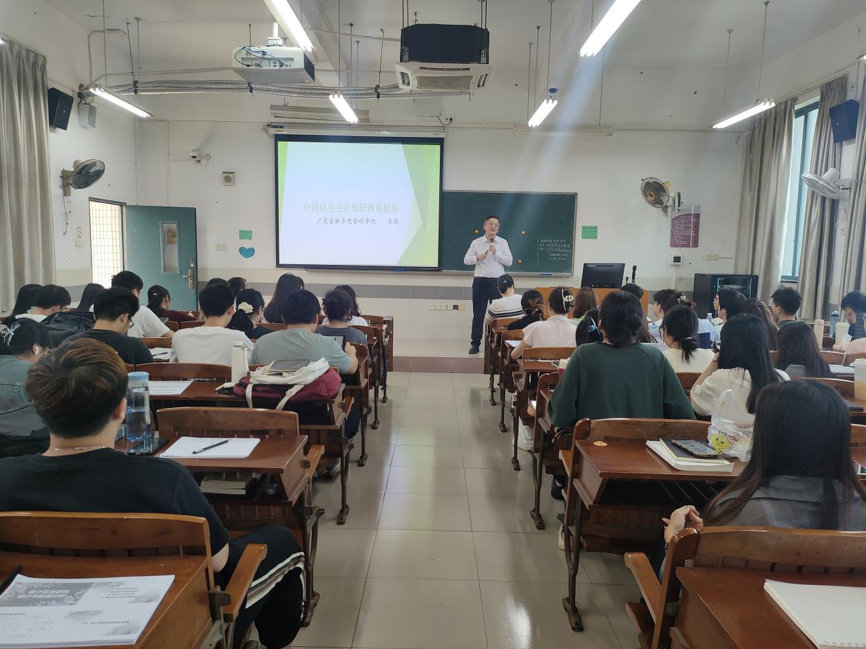 活动开始,秦格院长以“中国自主会计知识体系框架”为核心议题,进行了深入的思政课教学。他强调,构建中国自主会计知识体系必须坚定不移地以习近平新时代中国特色社会主义思想为指导。秦院长详细阐述了构建该体系的重大意义及必要性,并展示了中国人民大学课题组与南京理工大学课题组关于中国自主会计知识体系的研究框架,对框架内容进行了细致的讲解和拓展。授课接近尾声时,秦格院长对中国自主会计知识体系的未来发展表达了殷切期望,并鼓励同学们积极运用所学知识,为该体系的构建和完善提出个人见解。他特别指出,同学们应加强思考、勇于辩论,培养批判性思维,为国家治理体系和治理能力现代化贡献力量。