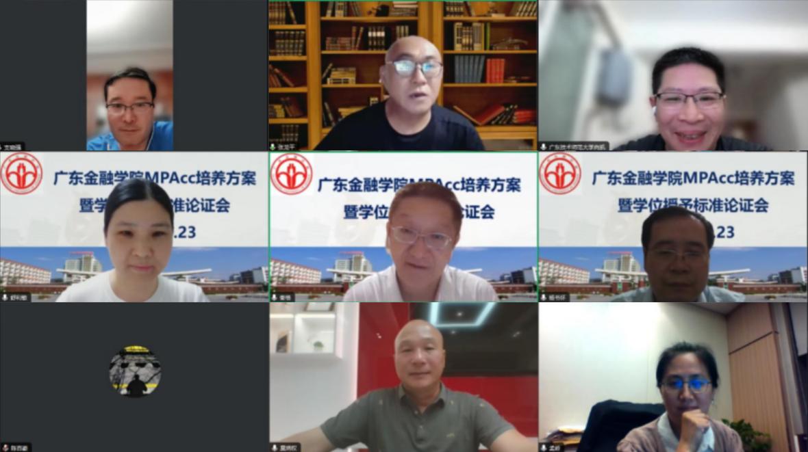 2024年5月23日晚上八点,bat365在线中国官网登录入口通过腾讯会议举行了会计硕士(MPAcc)培养方案暨学位授予标准论证会。会议邀请了全国会计专业学位研究生教育指导委员会秘书长、中国人民大学支晓强教授,中国会计学会副会长、全国审计专业学位研究生教育指导委员会委员、中南财经政法大学张龙平教授,广东技术师范大学财经学院院长向凯教授,广东丸美生物技术股份有限公司财务部莫炳权总监,广州银行总行计划财务部孟岭总经理,共同探讨和论证会计硕士研究生培养方案和学位授予标准。bat365在线中国官网登录入口领导班子成员、bat365在线中国官网登录入口研究生教育指导委员会委员、bat365在线中国官网登录入口研究生教育中心老师和导师代表参加了论证会。
